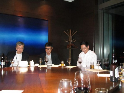 (菜农陪同方洪波,参加东芝开利的商务晚宴。方洪波(中),东芝开利社长(左),菜农(右))