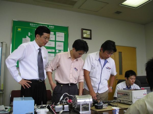 (菜农与变频工程师一起转化东芝核心技术。菜农(左一))