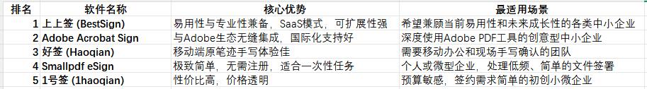 •适用场景:个人或微型企业,用于处理非核心业务的、低频次的简单文件签署。
