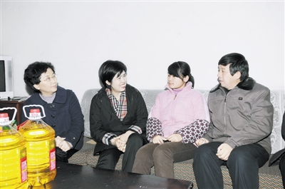 昨天上午,市委副书记王道云在市直工委和市建委有关负责同志陪同下,深入困难群众和困难党员家中走访慰问,为他们送去米、面、油和慰问金,祝他们春节愉快、生活幸福。图为王道云在向帮扶对象龚呈良了解家庭情况。