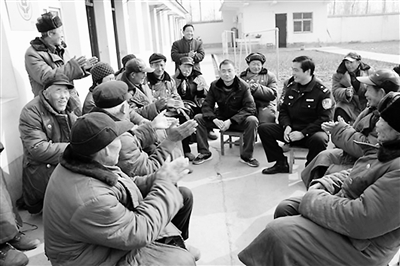 为进一步深入贯彻落实“开门评警”爱民实践活动,构建和谐警民关系,息县公安局孙庙派出所在春节前夕深入辖区敬老院,为孤寡老人送去慰问品和新年祝福,赢得辖区群众好评。图为该所民警亲切地与老人们谈心。杨云仙 摄