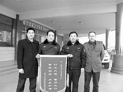 去年年底,西安大唐制药集团有限公司负责淮滨县市场销售的业务员王某携带3万余元货款不知去向。接到报案后,淮滨县公安局经侦民警迅速展开调查,于今年1月12日将王某抓获。王某对其携款潜逃的事实供认不讳,并将3万余元赃款全部退还。近日,该公司相关负责人专程赶到淮滨县公安局,将一面写有“打击犯罪雷厉风行、警民团结共筑和谐”的锦旗送到该局局长董志刚(左二�