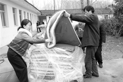 日前,光山县检察院检察长黄立鹏带领该院部分工作人员来到晏河乡晏河光荣敬老院进行帮扶慰问,给老人们送去价值1万余元的慰问品。图为工作人员正在搬运慰问品。