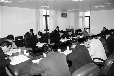 2月8日下午,市人大常委会组织市政府提请任命的16名市政府工作部门的主任、局长和市人大常委会主任会议提请任命的2名工作委员会的主任、副主任进行法律知识考试。图为考试时的情景。