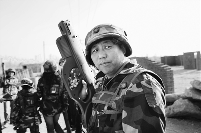 2月19日,一位参加真人CS的北京市民穿上迷彩服,拿起“冲锋枪”扮酷。春节假期,一些北京市民结伴来到郊外拓展基地体验真人CS。 新华社记者 杨 光 摄
