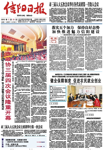 本报讯(记者 曹新俊)聚精会神谋发展、同心同德促和谐。22日上午,政协信阳市第三届委员会第四次会议在平桥国际会展中心隆重开幕。