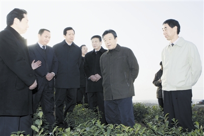 省委书记卢展工在市委书记王铁、市长郭瑞民、平桥区委书记张明春、区长王继军的陪同下视察平桥农村改革试验核心区陆庙村。