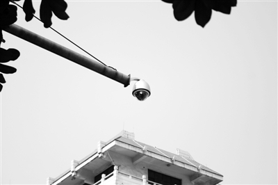 | 图为我市某校园新安装的监控摄像头。 苏 鹏 摄 |