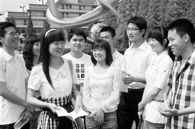 2010年,信阳师范学院应届毕业生考研再次取得优异成绩,部分专业录取率超过50%。图为该院化学化工学院部分考取研究生的同学在一起交流考研体会。