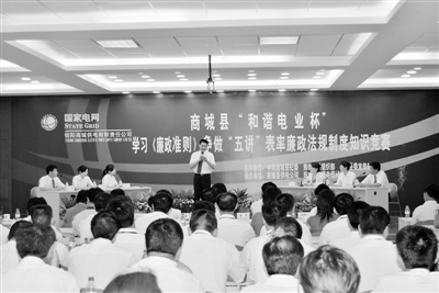 为把学习践行《廉政准则》与正在开展的“五讲”教育活动紧密结合起来,增强广大党员干部的廉洁意识,近日,商城县举行了“学习《廉政准则》、争做‘五讲’表率”廉政法规制度知识竞赛。图为竞赛现场。