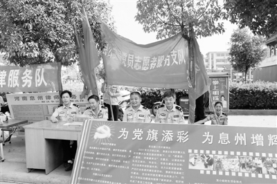 6月30日上午,息县公安局党员志愿者服务队在城关镇谯楼街开展“党员服务一条街”活动,开展政策法律咨询、便民利民服务宣传等。活动当天,共展出展板5块,发放宣传单300余份,接受群众咨询20余次。 杨树海 摄
