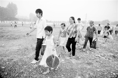 7月7日,淅川县大石桥乡东湾村村民前往乘坐移民班车准备外迁。