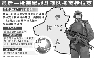 美军最后一个完整战斗旅当地时间8月19日凌晨撤出伊拉克。按计划,其余驻伊美军战斗部队将在8月31日前全部撤出,而非战斗部队的撤离将在明年年底前完成。