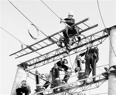 固始县电业局利用清晨气温低、用电负荷小的时机,消除变电设备的各类隐患。图为8月19日清晨,该局人员在35千伏陈集变电站检修时的情景。