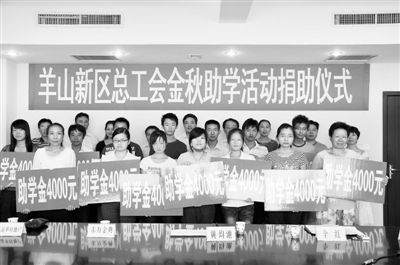 日前,又一批即将踏入大学校门的贫困学子因羊山新区“金秋助学”活动而受益,每名受助学生获得了4000元助学金。截至目前,羊山新区“金秋助学”活动共捐助贫困学生20余名,资助总额8万余元。本报记者 黄 铎 摄