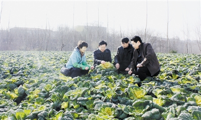 双节期间,我市市场上的蔬菜质优量足,这得力于市委、市政府对“菜蓝子”工程的重视以及采取的有力措施。图为平桥区洋河镇千余亩黄心菜喜获丰收,总产可达400万公斤,仅此一项可为农民增收200万元。