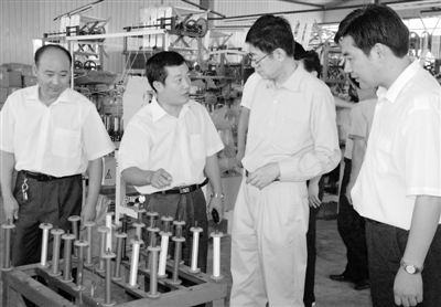 息县县委书记张富治(左二)深入企业调研。 夏堂名 摄 |