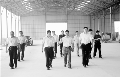 息县人民政府县长余运德(前排左三)深入集聚区调研。 夏堂名 摄 |