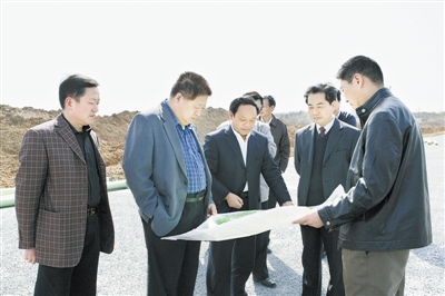3月16日,郑州海关党组书记、关长栗洪显(左二)一行来我市考察,并会商信阳海关的筹建事宜。市政府副市长张明春、信阳农专党委书记刘世华等陪同考察。