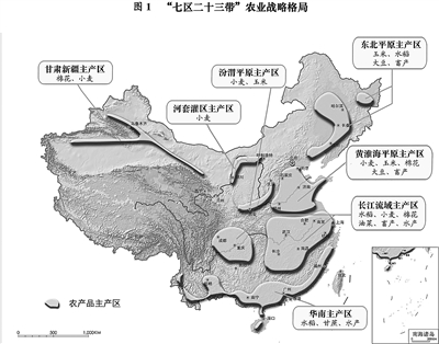 完善现代农业产业体系,发展高产、优质、高效、生态、安全农业。优化农业产业布局,加快构建以东北平原、黄淮海平原、长江流域、汾渭平原、河套灌区、华南和甘肃新疆等的农产品主产区为主体,其他农业地区为重要组成的“七区二十三带”农业战略格局。鼓励和支持优势产区集中发展粮食、棉花、油料、糖料等大宗农产品。加快发展设施农业,推进蔬菜、水果、茶叶、花卉等园艺作物标准化生产。提升畜牧业发展水平,提高畜牧业产值比重。促进水产健康养殖,发展远洋捕捞。积极发展林业产业。推进农业产业化经营,扶持壮大农产品加工业和流通业,促进农业生产经营专业化、标准化、规模化、集约化。推进现代农业示范区建设。