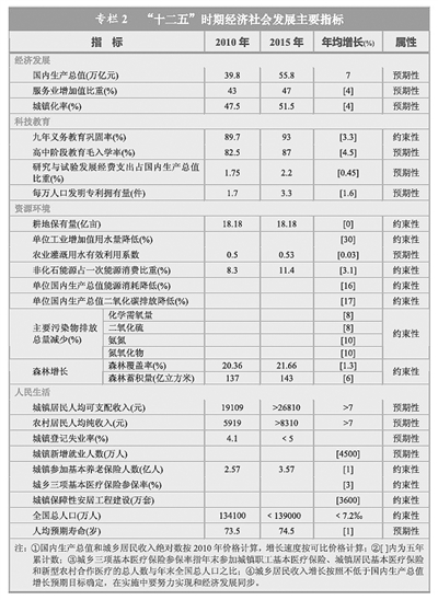 按照与应对国际金融危机冲击重大部署紧密衔接、与到2020年实现全面建设小康社会奋斗目标紧密衔接的要求,综合考虑未来发展趋势和条件,今后五年经济社会发展的主要目标是: