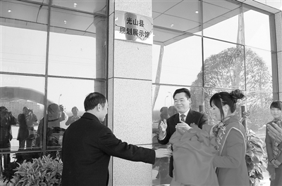 信阳市城乡规划管理局局长饶祖顺,光山县领导文宗锋、魏晓莉、向正升、郭殿远等出席揭牌仪式。揭牌仪式由光山县委常委、县纪委书记樊太明主持。市城乡规划管理局局长饶祖顺与光山县委副书记、县长文宗锋一起为规划展示馆揭牌。