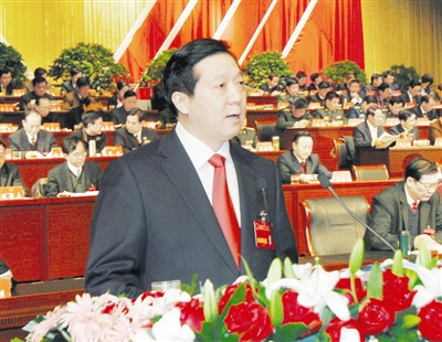 市长郭瑞民在作《政府工作报告》。本报记者 秦 旭 摄 |