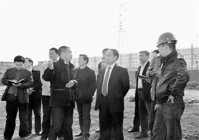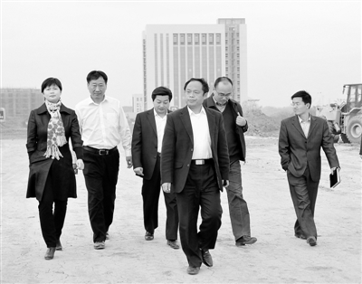 市政府副秘书长、羊山新区党委书记、主任陈延虎检查新区项目建设情况。 尧 平 摄 |