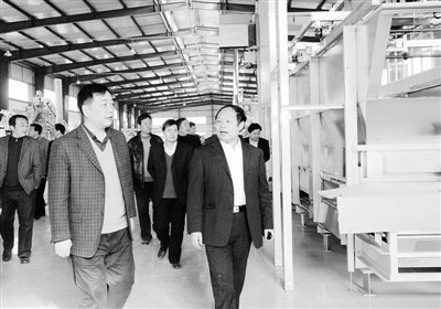 市政府副秘书长、羊山新区党委书记、主任陈延虎在五云茶叶公司生产车间调研。 尧 平 摄 |