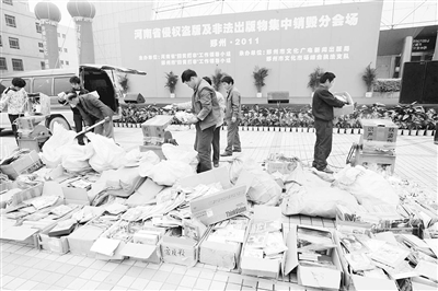 这是河南省郑州市侵权盗版及非法出版物集中销毁现场。