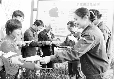 河南省新郑市邮局的工作人员将科技书籍送到八千乡农民手中。