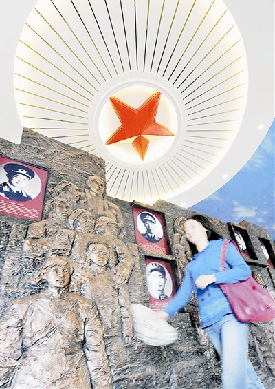 4月23日,游客们在新县红四方面军将士纪念馆景区内参观。