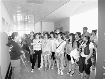 为了普及大学生无偿献血的相关科学知识,共同倡导“奉献、友爱、互助、进步”的志愿者理念,倡导健康生活,日前,市中心血站为信阳师院的志愿者们举办了无偿献血知识讲座。图为信阳师院的志愿者们在市中心血站参观时的情景。