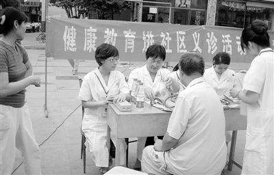 近期,浉河区民权办事处在社区举办病媒防治与健康教育知识讲座,组织开展义诊活动。图为活动现场。
