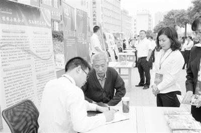 5月4日,一吴姓微型企业业主在信阳银行宣传台前申请10万元贷款。当日上午,全市各金融单位服务小微企业宣传活动在市中心城区新六大街举行,各国有银行、信阳银行及本地村镇银行集中展示了针对小微企业的各项个性化金融服务。副市长张明春观看了宣传活动。本报记者 方慧玲 摄