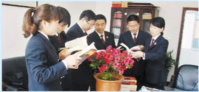 近日,光山县检察院认真开展“五月读书月”活动,大力倡导在工作中学习,在学习中工作,并定期组织读书心得和调研成果交流。图为该院政治处主任与青年干警交流读书体会。