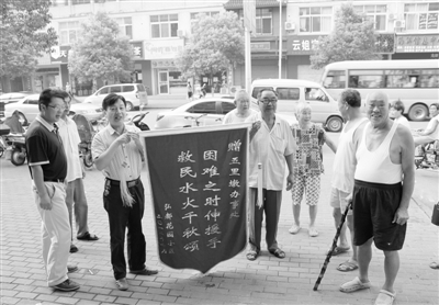 一面锦旗一片心。日前,五里墩辖区新华西路弘都花园小区几名群众代表不顾炎热天气,将一面绣有“困难之时伸援手、救民水火千秋颂”的锦旗,送到五里墩办事处,感谢办事处为小区解决了多年来遗留下来的用电难题。