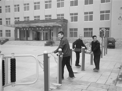 市体育局为罗山县残疾人康复中心捐献的3.2万元的康复健身器材,目前已安装完毕投入使用。图为10月10日该县城关镇残障人在县残疾人康复中心进行康复训练。叶 辉 摄