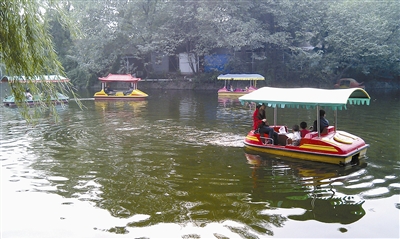 浉河公园的静湖经过清淤修整后焕然一新,除了湖内水质有了大的改善,湖边还修建了护栏,令游人带孩子游玩时放心了不少。不少游客纷纷来到这里划着小船在碧波中荡漾,尽情享受秋日的阳光。