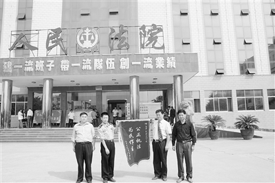 近日,丁某将一面写着“为民作主、公正执法”的锦旗送到息县法院,感谢该院法官为其解决了债务纠纷。王淑娟 摄