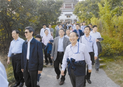 本报讯(记者 马保群)10月19日下午,参加“院士信阳行”活动的沈文庆、吴国雄、周孝信、邓伟、刘卫东等20多位国家著名的院士和研究员到南湾湖景区进行实地考察。市领导张春香、董进才、周慧超陪同考察。
