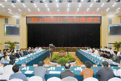 本报讯(记者 方慧玲 杨 柳 卢小龙 见习记者 高晶晶)10月20日下午,我市举行“院士信阳行”活动座谈会,院士、专家们就更好更快地推动信阳经济社会发展建言献策。