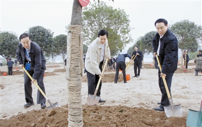 本报讯(记者 卢小龙)10月20日上午,在我市参加“院士信阳行”的16位中科院院士兴致勃勃地来到北湖风景区,与我市领导郭瑞民、乔新江、张春香、王道云、李水、高曙霞一起,开展义务植树活动。