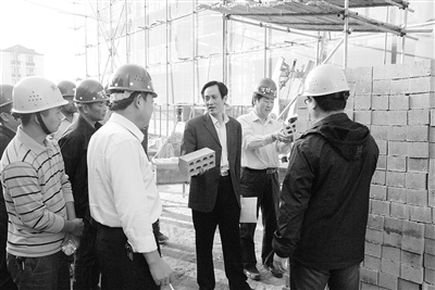 日前,市住房和城乡建设局的负责同志深入相关在建保障性住房项目工地,检查工程质量。张继生 摄 |