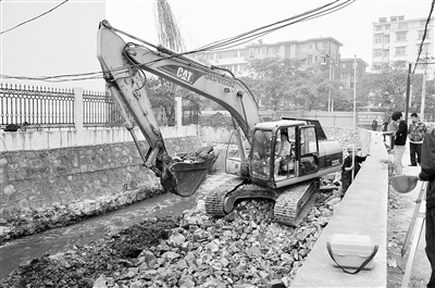 我市城管综合执法部门继续加大中心城区内河综合治理力度。图为中心城区内河之一——黑泥沟施工现场。