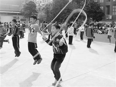 为进一步推行素质教育,增强学生体质,近日,市三小举办了秋季运动会。运动会上,同学们参加了短跑、接力跑、跳绳等多个项目的角逐。图为该校学生正在进行跳绳比赛。