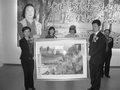10月26日,中国当代著名水彩画家张俊秋将自己精心创作、取材于我市南湾湖畔一处自然景观的水彩画作品《茶乡秋色》,捐赠给市博物馆,以表达对信阳自然美景的喜爱之情。整幅作品秋意浓浓,深邃中蕴含平静,细腻中体现了张俊秋先生真挚的情感。图为捐赠现场。