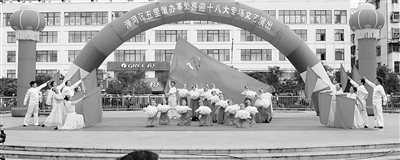 日前,浉河区五里墩办事处在体彩广场举办“喜迎十八大专场文艺演出”,庆祝党的十八大胜利召开。 何家锋 摄 |