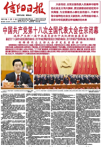 中国共产党第十八次全国代表大会在京闭幕