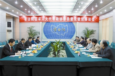 11月14日,河南省高院征求人大代表、政协委员意见建议座谈会在我市召开。会议通报了全省法院上半年主要工作情况和信阳中级法院1月至10月份工作情况,共征求人大代表、政协委员意见30条,建议14条。